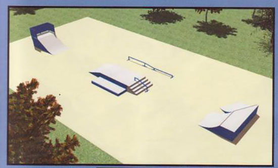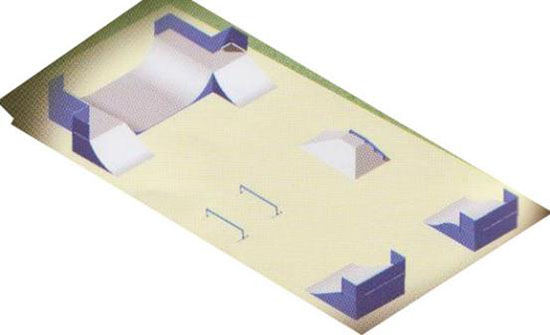2、中級:弧面出發(fā)臺、斜面出發(fā)臺、弧面拋臺、斜面拋臺、臺階、扶手、金字塔、斷橋、盒子、平桿、小型U池或連體小型U池