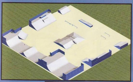 3、比賽級:大型弧面出發(fā)臺、大型斜面出發(fā)臺、大型弧面拋臺、大型斜面拋臺、臺階、樓梯扶手、大型金字塔、大型斷橋、小型u池、大型U池