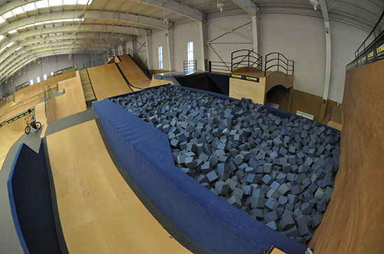 含有海綿池、蹦床、軟著陸緩沖墊等輔助訓(xùn)練設(shè)施的場地。